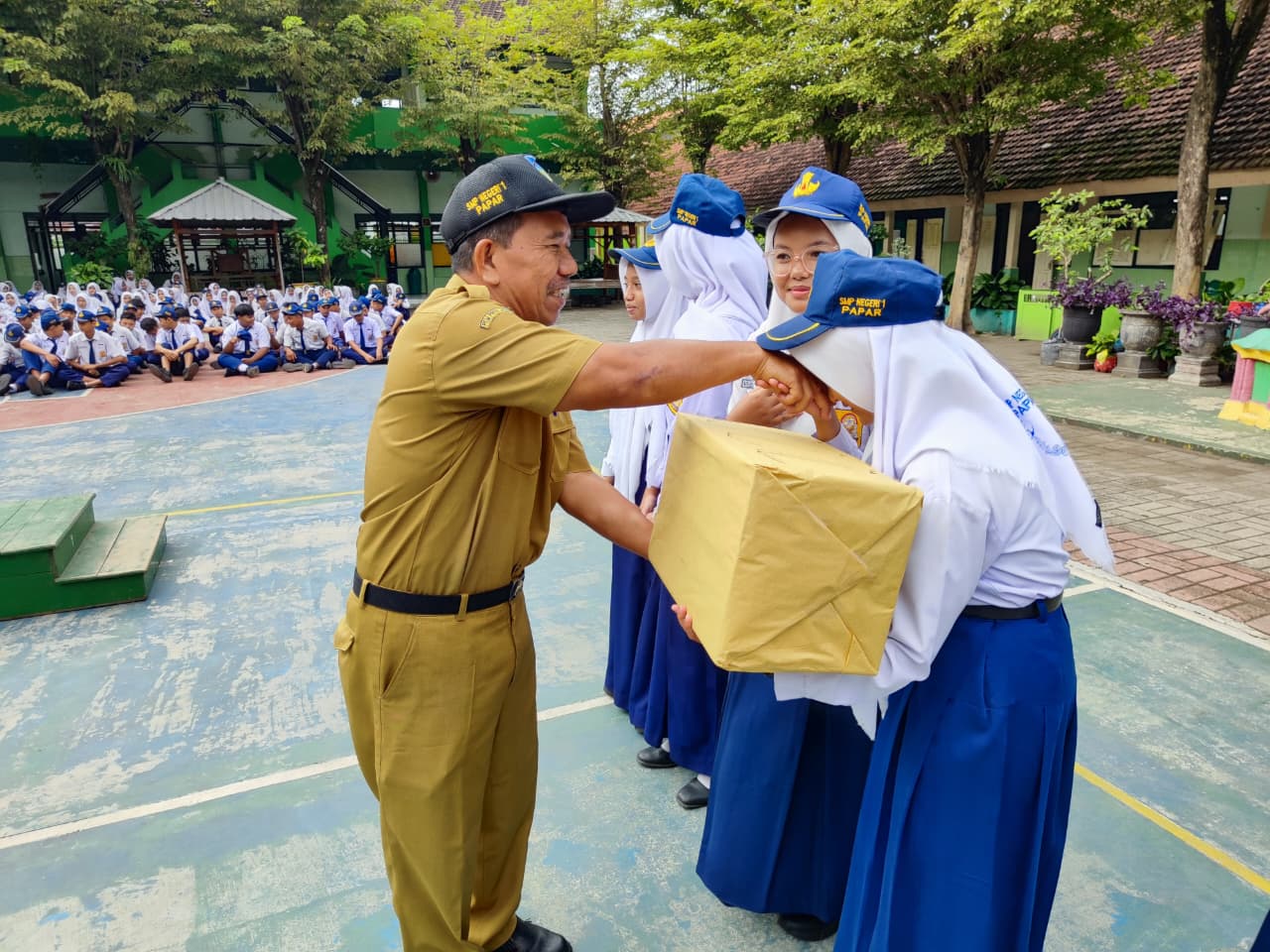 Penyerahan hadiah dilakukan secara langsung oleh Bapak Kepala Sekolah SMP Negeri 1 Papar, Moh. Hadi Nursalim, S.Pd., M.Pd., kepada para pemenang lomba sebagai bentuk apresiasi atas kreativitas, kekompakan, dan kerja keras peserta didik.