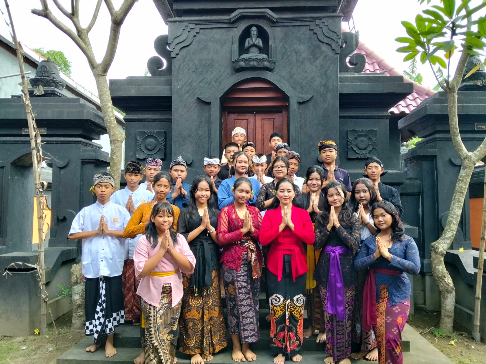 Adapun siswa yang beragama Hindu mengikuti kegiatan pembinaan keagamaan Hindu yang berfokus pada peningkatan sraddha dan bhakti. Kegiatan sembahyang diawali dengan pembacaan Trisandya sebagai pemujaan dan pemusatan pikiran kepada Ida Sang Hyang Widhi Wasa. Selanjutnya dilaksanakan Muspa (Panca Sembah) yang dimulai dengan sembah pertama sebagai penghormatan dan penyucian diri, sembah kedua dan ketiga sebagai pemujaan serta permohonan anugerah kepada Ida Sang Hyang Widhi Wasa beserta manifestasi-Nya, sembah keempat sebagai ungkapan rasa syukur atas anugerah yang telah diterima, dan sembah kelima sebagai penutup dengan permohonan keselamatan serta kedamaian. Melalui rangkaian sembahyang ini, umat diharapkan dapat meningkatkan sraddha dan bhakti. Dharmawacana tema Lascarya dalam Berkarma